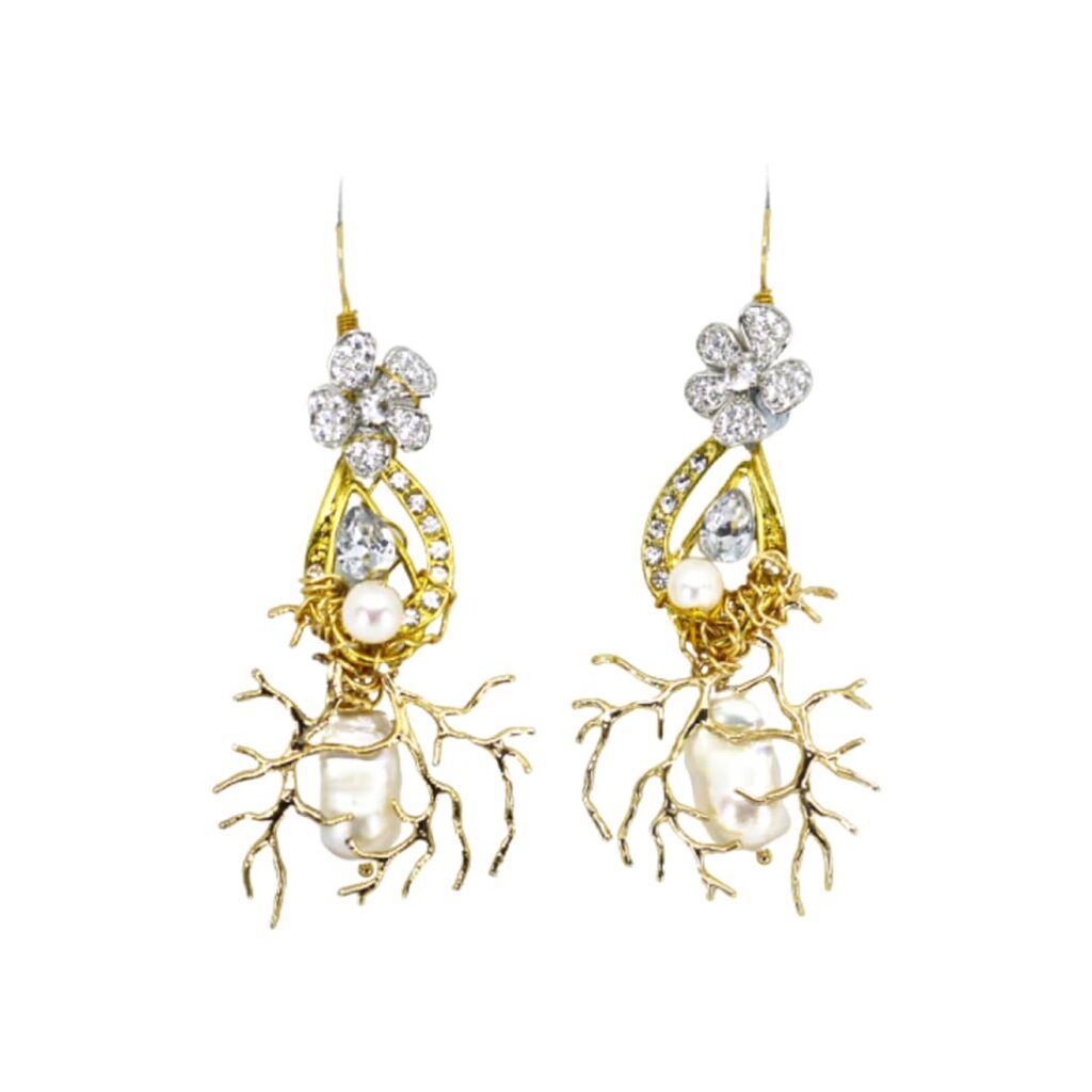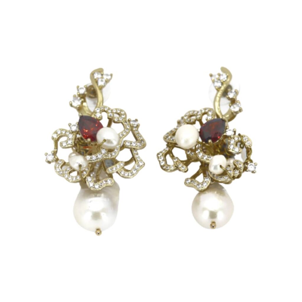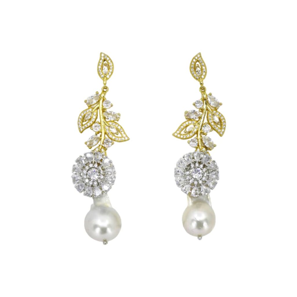 An OTT earrings with delicate work and a pair of matching fresh water pearls