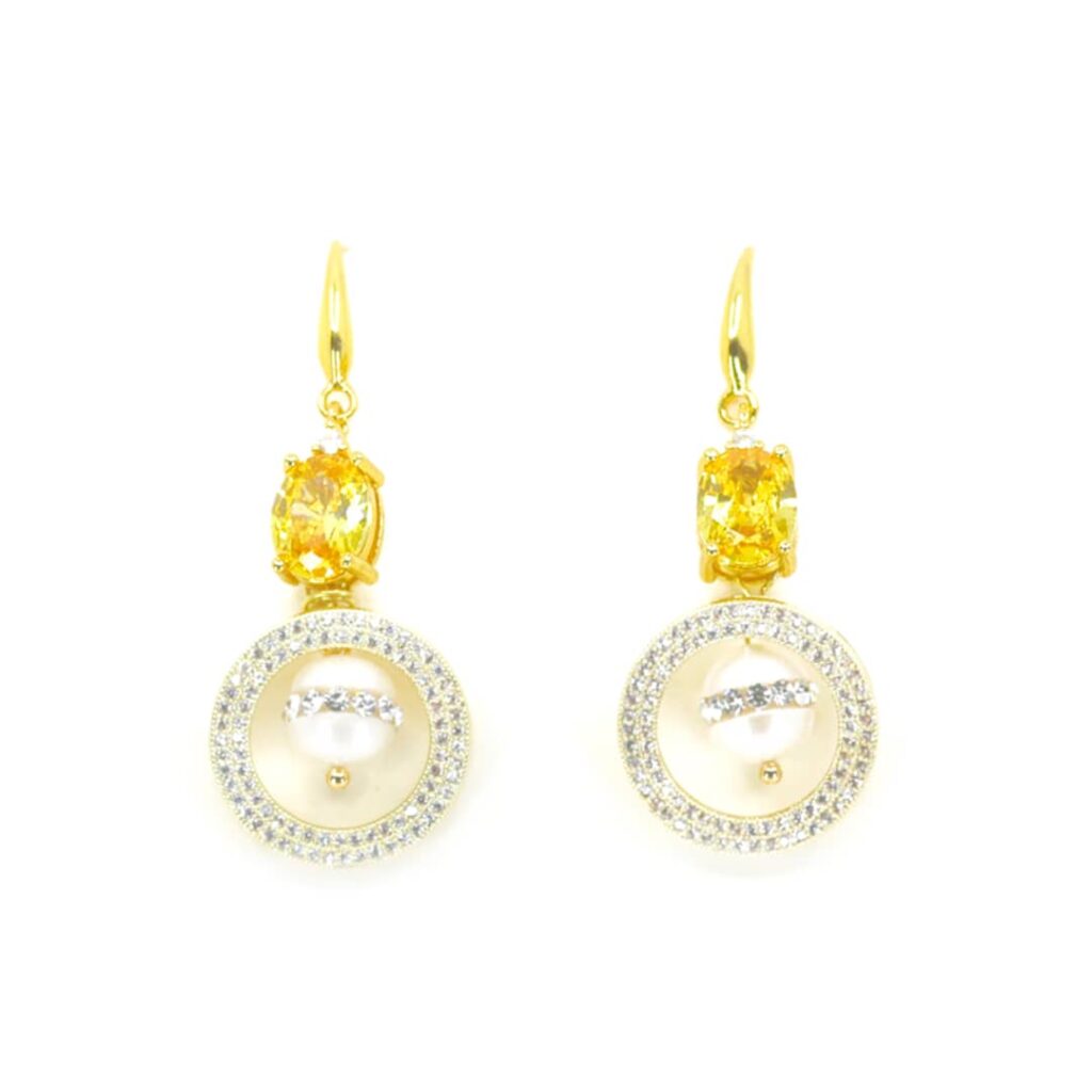 Gold tone Citrine earrings unique pearl inserted with CZ to give itthe sparkle.