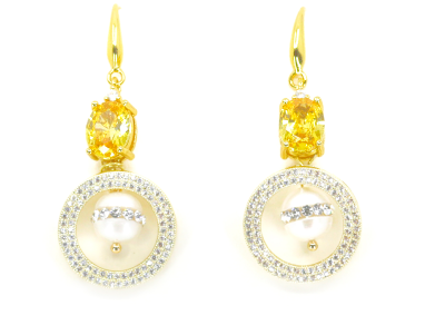 Gold tone Citrine earrings unique pearl inserted with CZ to give it